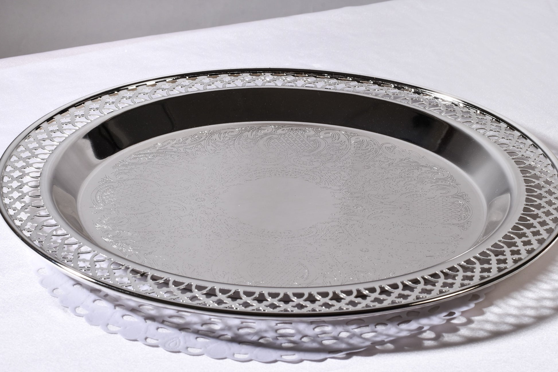 Salver / Serving Tray with elegant lattice / cut work
